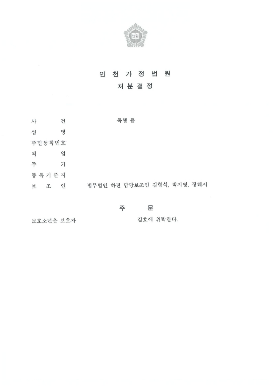 1호 보호자 감호위탁이라는 경미한 처분을 이끌어냈다는 점에서 매우 의미 있는 결과입니다.